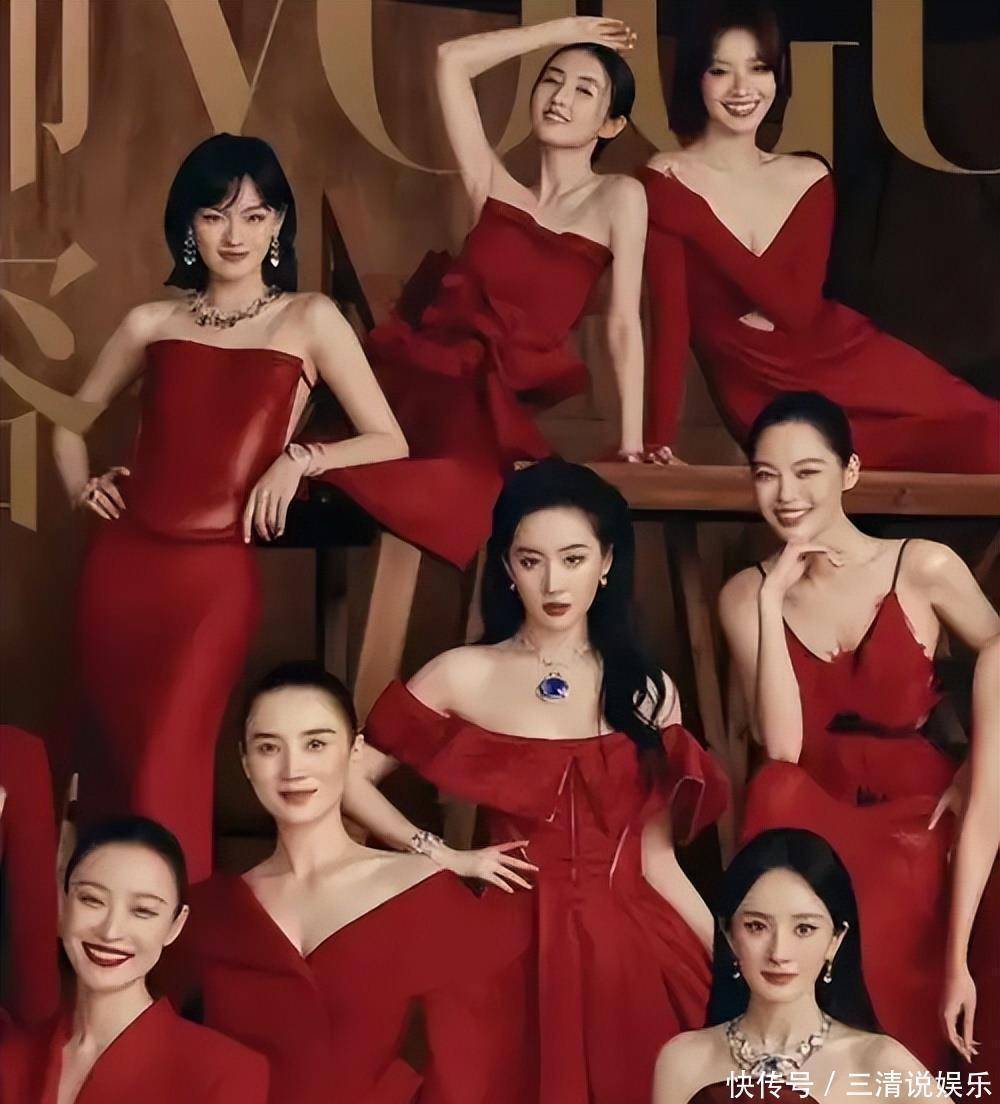 这次的VOGUE杂志拍摄也是这个风格。脑海里还浮现上次拍的那个杂志二十周年封面。当时有十几位女演员一块儿出镜,杨幂并没有站在C位。