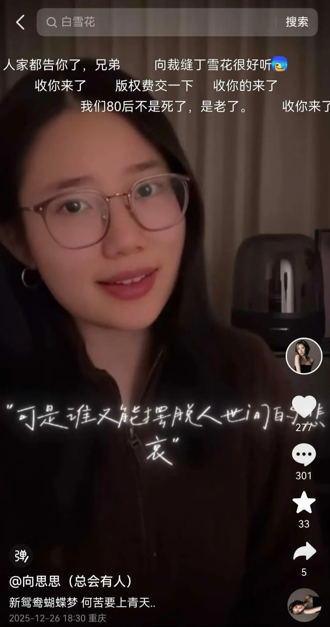 记者注意到,有许多网友在向思思的其他视频下方评论:“你捅了80后的马蜂窝”“丁香花你都动,你当九零后零零后没听过?”